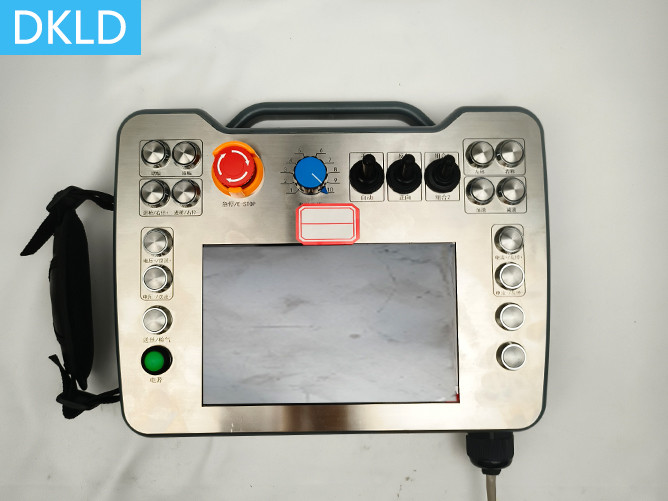 • 3个双轴摇杆+8个按键+1个两档旋转开关+1个5档旋转开关7寸触摸屏平板型工业无线遥控器